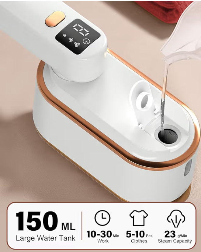 This travel steamer is a total game-changer! It heats up in just 10 seconds, and the 1200W power really gets wrinkles out fast. I love the 4 steam modes and the LCD display — it makes it super easy to control based on the fabric. The 180° swivel handle is a smart touch, especially when you’re steaming at awkward angles. Compact enough for travel but powerful enough for everyday use at home. The 150ml tank lasts longer than I expected too. Definitely worth it if you want something portable but effective!